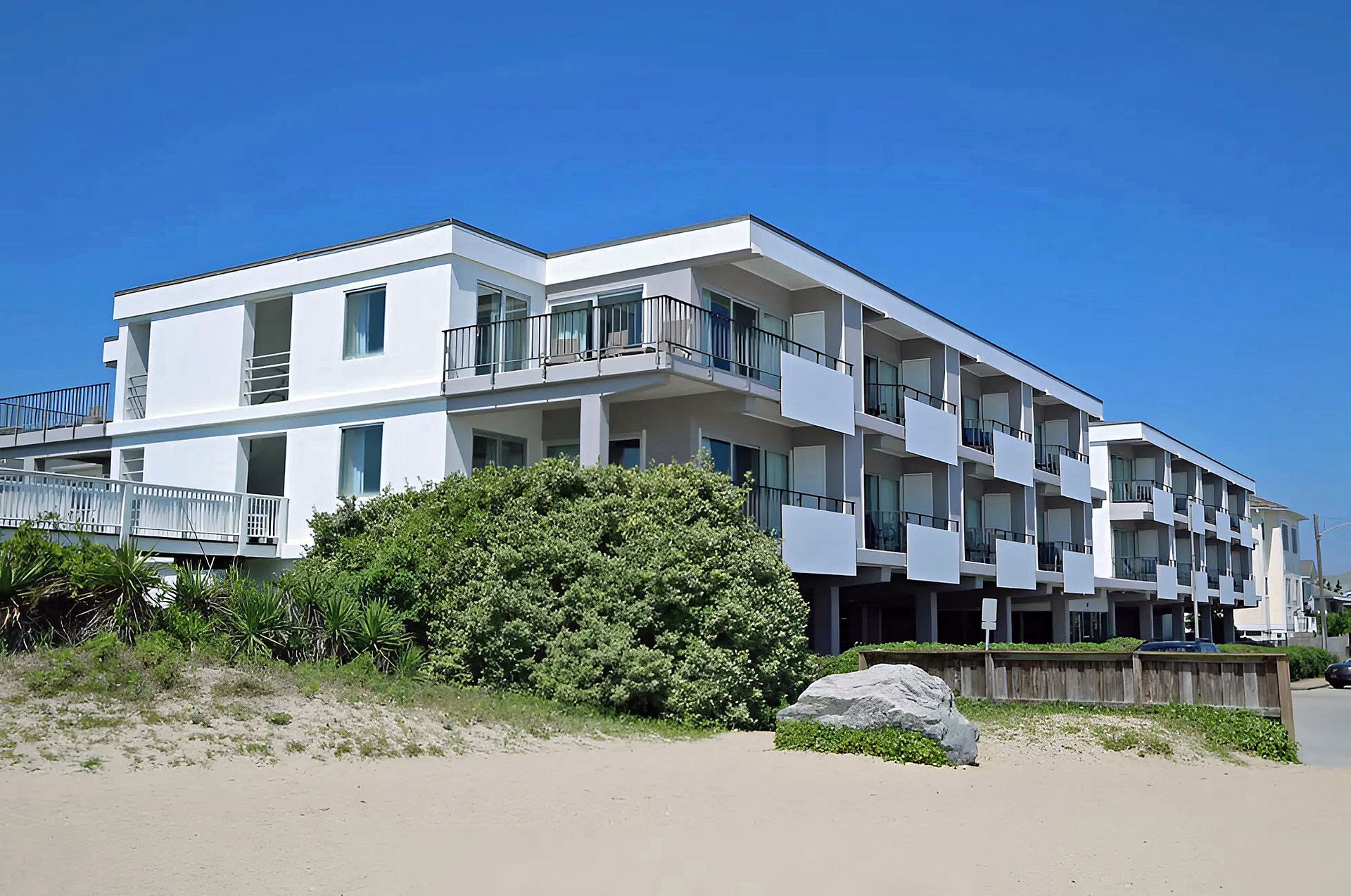 Only a wide beach stands between you and the Atlantic Ocean. Restaurants, shops, and Johnnie Mercer’s Pier are within easy walking distance.